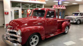 This 1954 Chevrolet 3100 5 Window Resto-mod features a fuel-injected LS1 engine, 4L60E transmission, and stunning burgundy metallic paint. It combines modern performance with a custom leather interior, power windows, and air conditioning, offering a smooth, reliable driving experience.